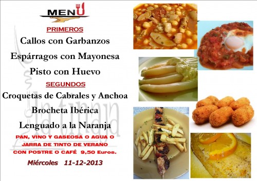 Menú Miércoles 11 de Diciembre de 2013