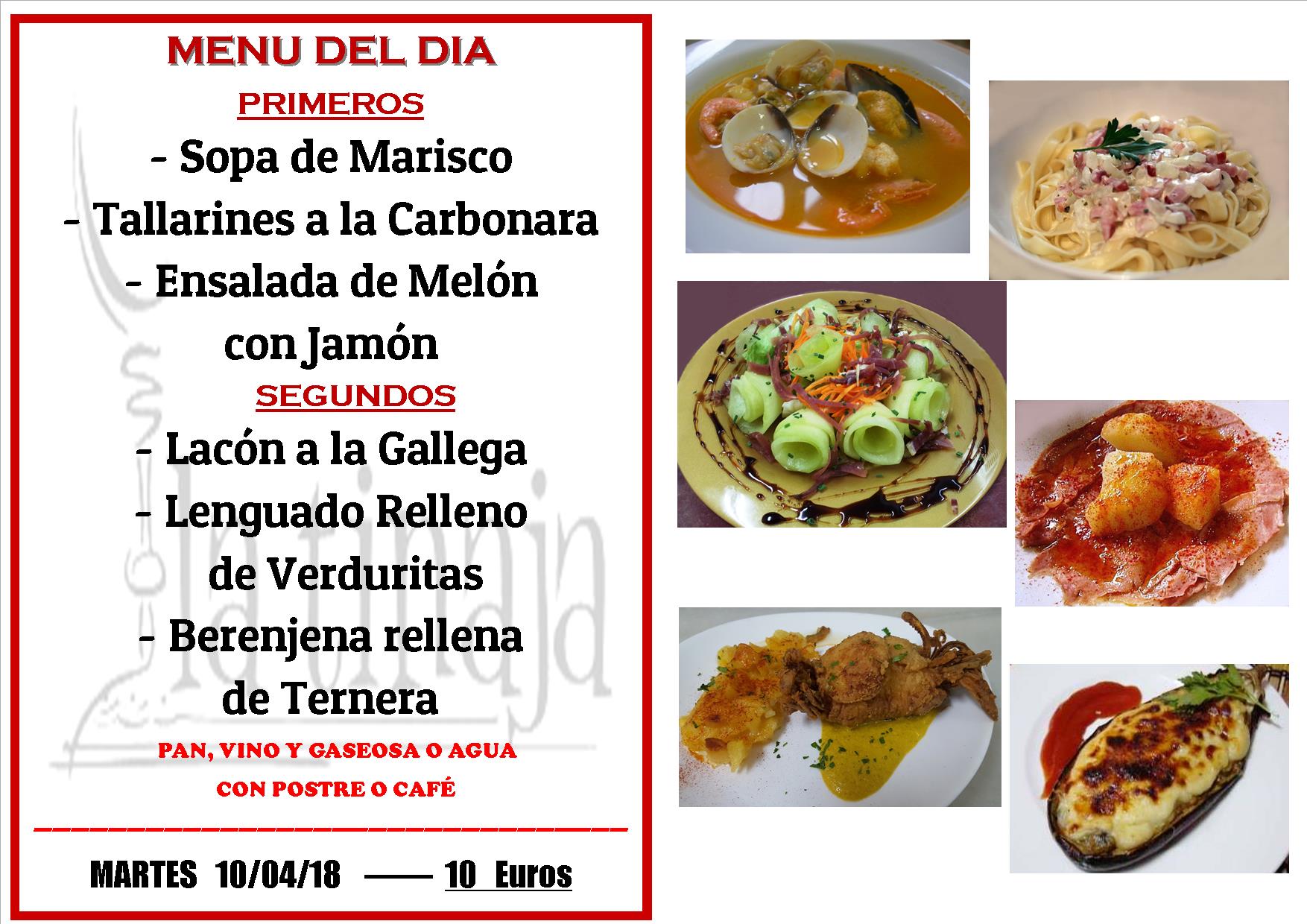 Menu Martes 10 de Abril de 2018