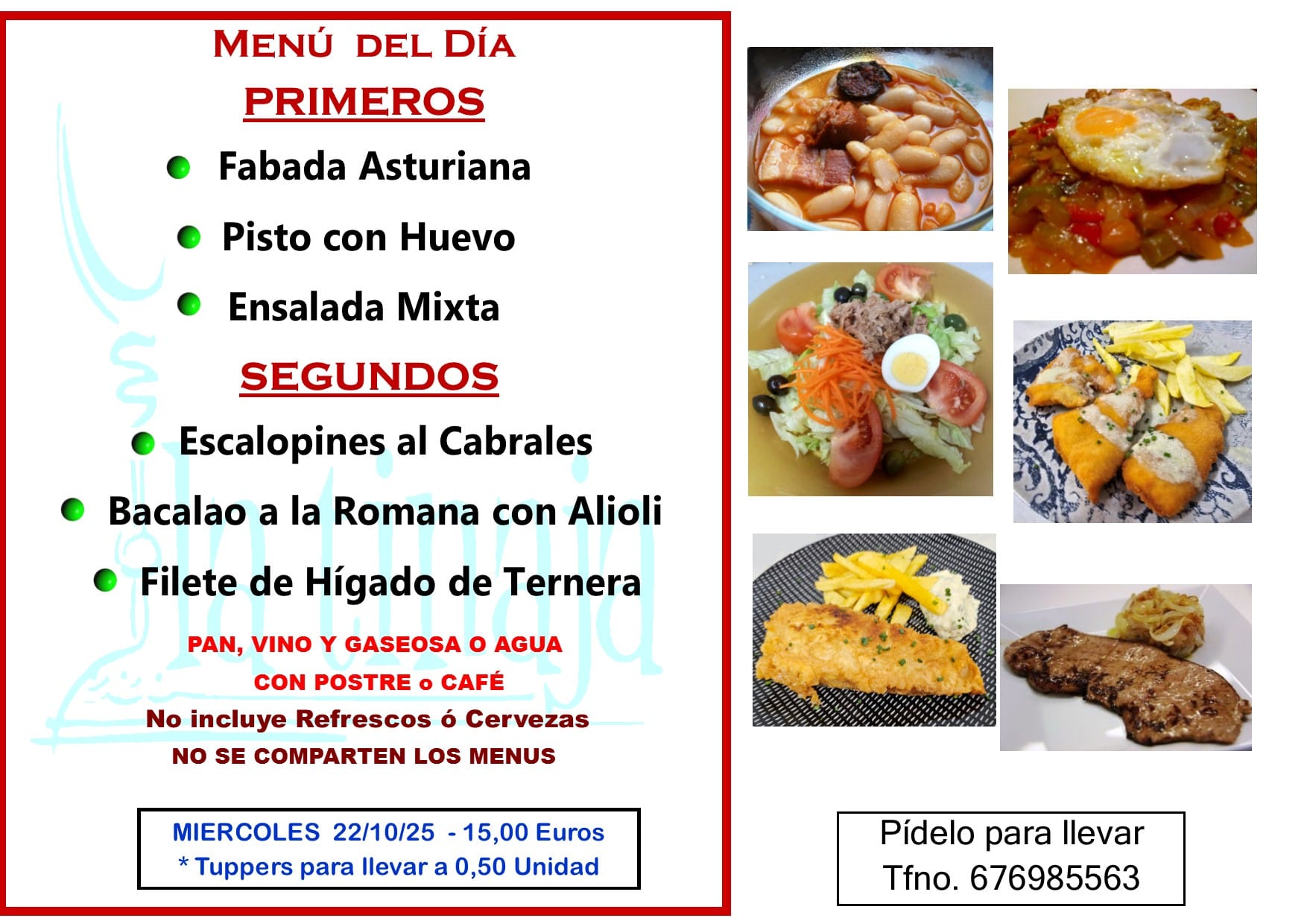 Menú Miércoles 22 de Octubre de 2025