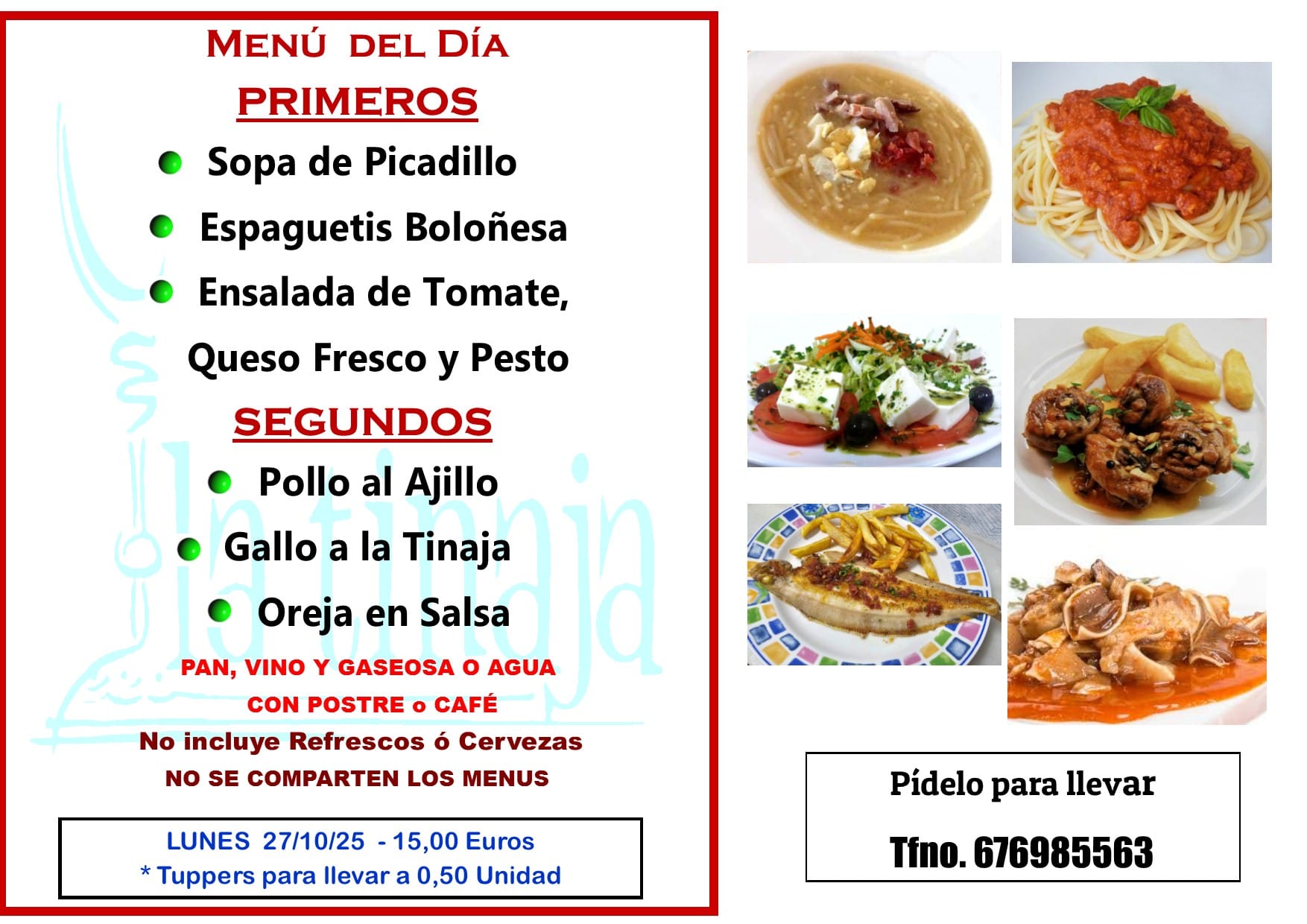 Menú Lunes 27 de Octubre de 2025