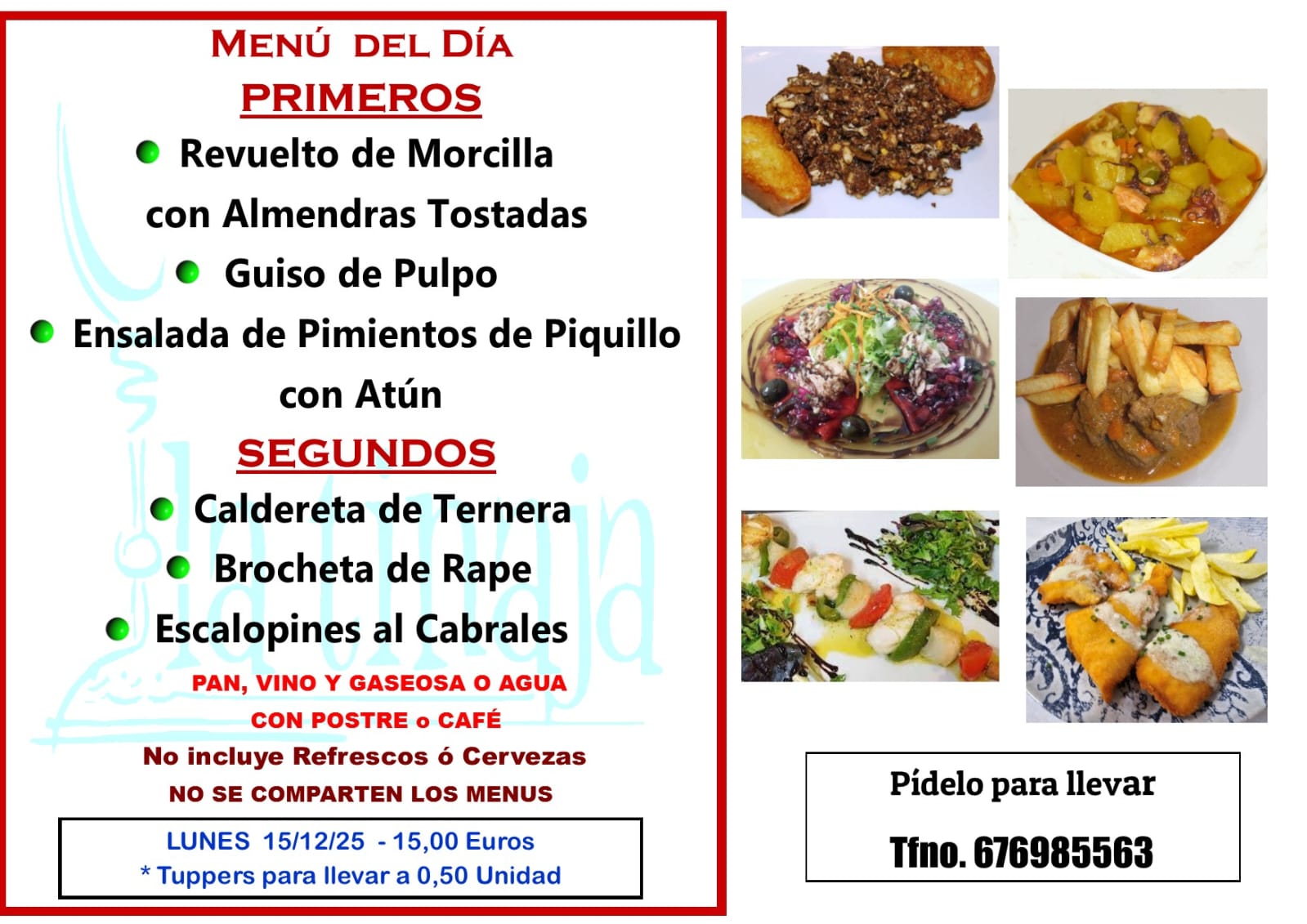 Menú Lunes 15 de Diciembre de 2025