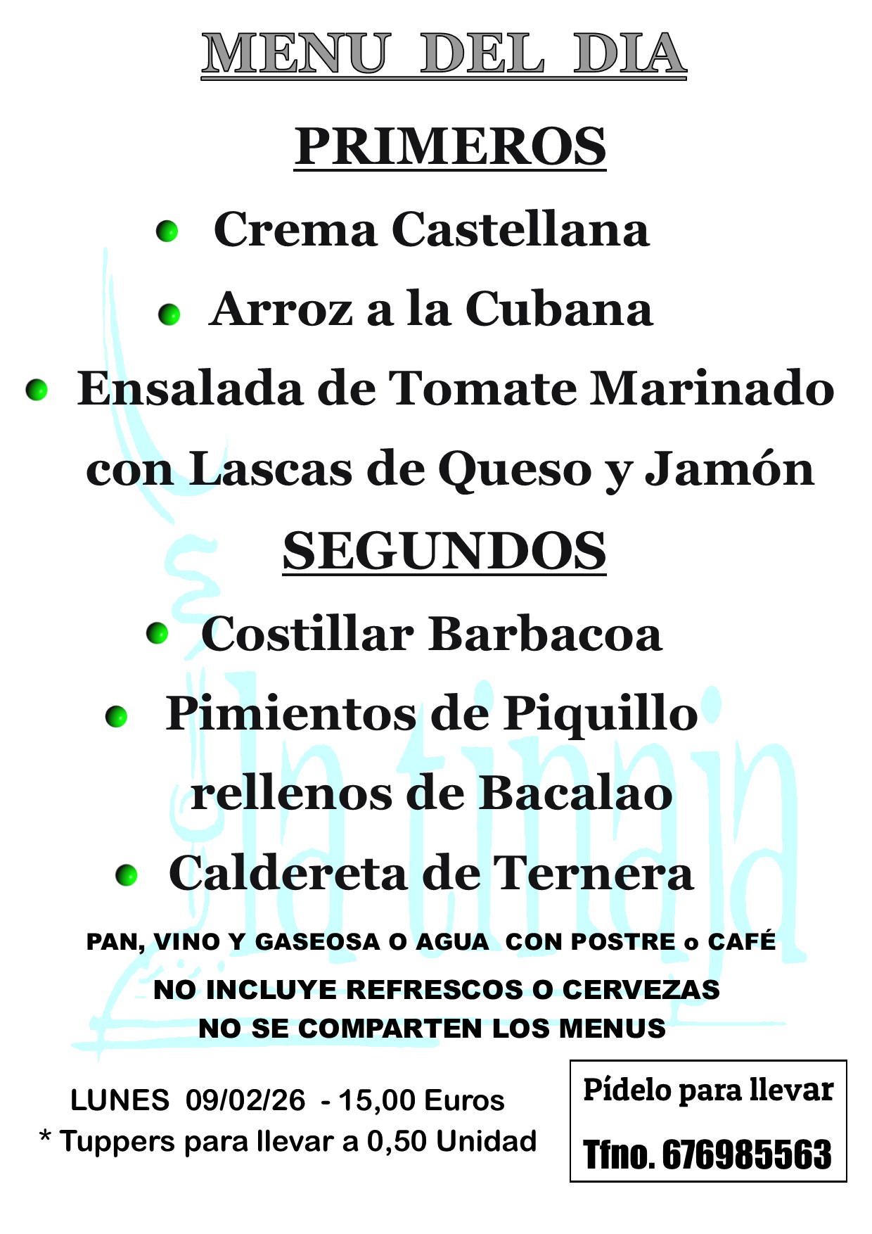 Menú Lunes 9 de Febrero de 2026